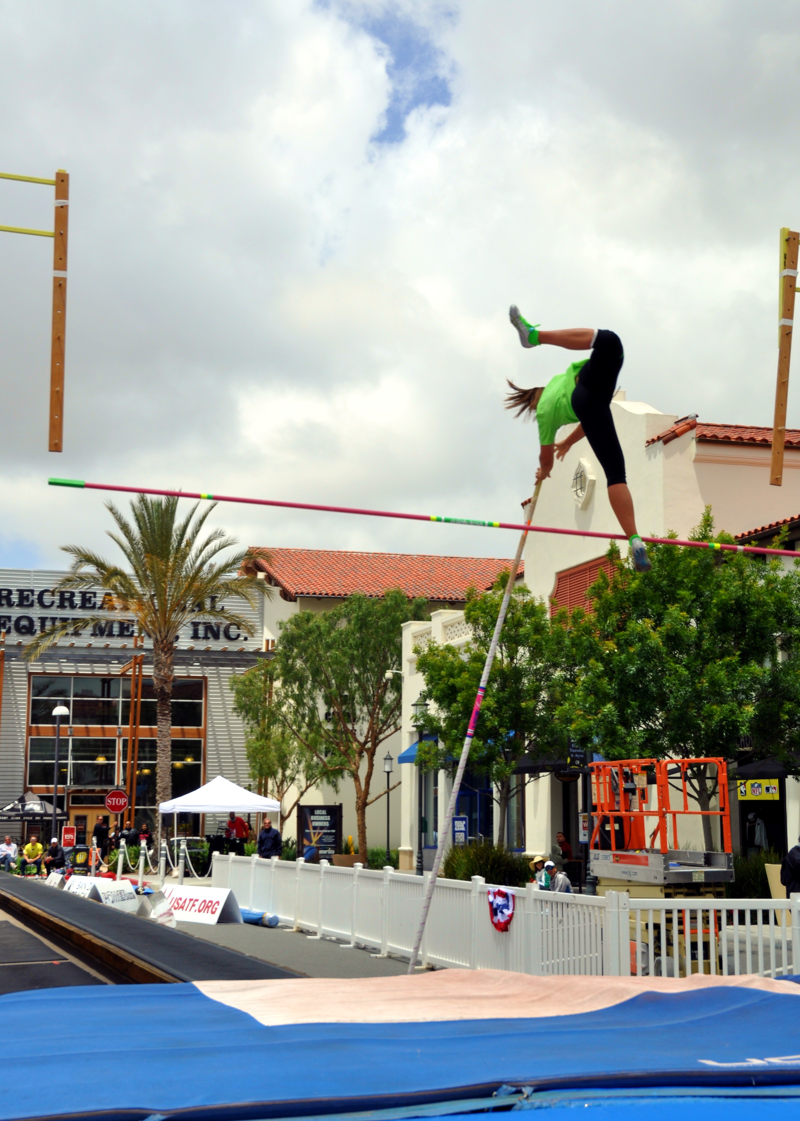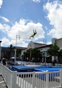 Recently AIM Communications worked with client Otay Ranch Town Center to publicize “Mall Vault.” This fun weekend event hosted professional and amateur athletes from US Track & Field for a one-day competition taking place right down the middle of Main Street! Crowds oohed and aahed the dramatic leaps and falls and we had three television stations come out — ABC (KGTV), KUSI (IND) and CBS (KFMB).