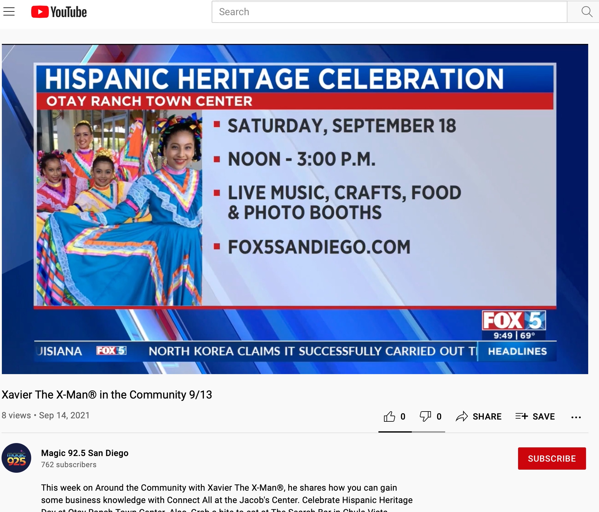 Client Otay Ranch Town Center holds an impressive community Hispanic Heritage Month Celebration every September. Small sampling of one of many pre-event promotion segments as well as selection of post-event photos.